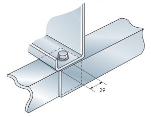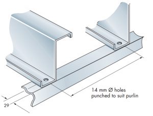 – 14mm Ø hole 29mm from end of purlin in bottom flange only.